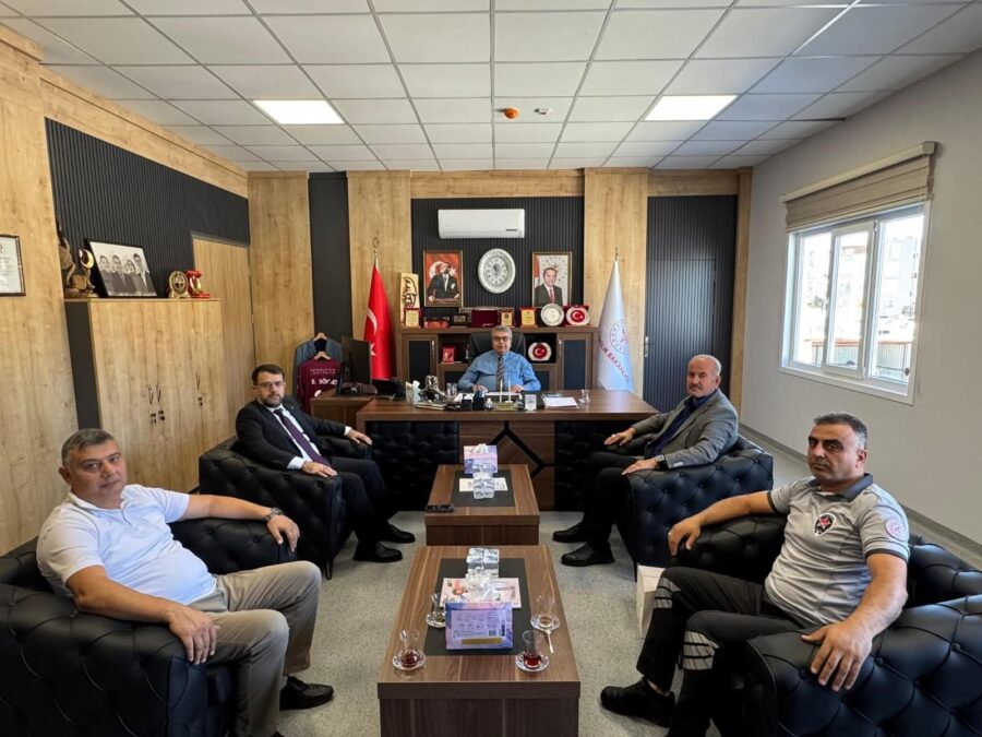 Öz Sağlık-İş Sendikası Hatay Şube Başkanı Fehmi Azboy ve beraberinde bulunan sendika yönetim kurulu üyeleri Hatay İl Sağlık Müdürü Dr. Sıtkı Sönmez’i makamında ziyaret ettiler.