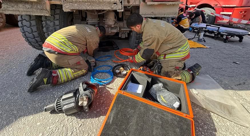 Hatay’ın Antakya ilçesinde kamyonun altında kalan kişi itfaiye ekipleri kurtardı.