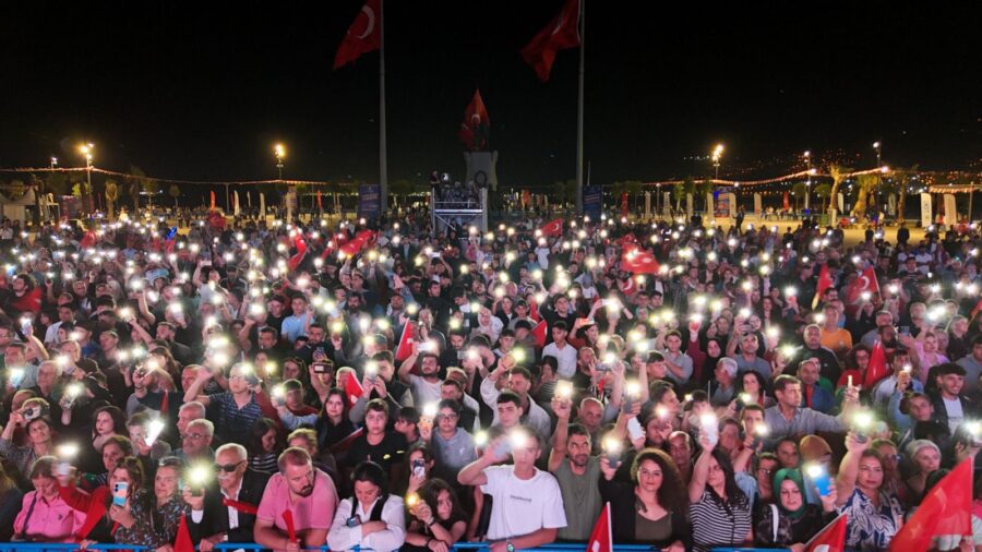 6 Şubat’ta yaşanan elzem deprem felaketinde yaşamını yitiren vatandaşların anısına başlayan konser, farklı dil ve çeşitli şarkı türleri ile alana gelen dinleyicilere anlamlı bir 29 Ekim kutlaması yaşattı.