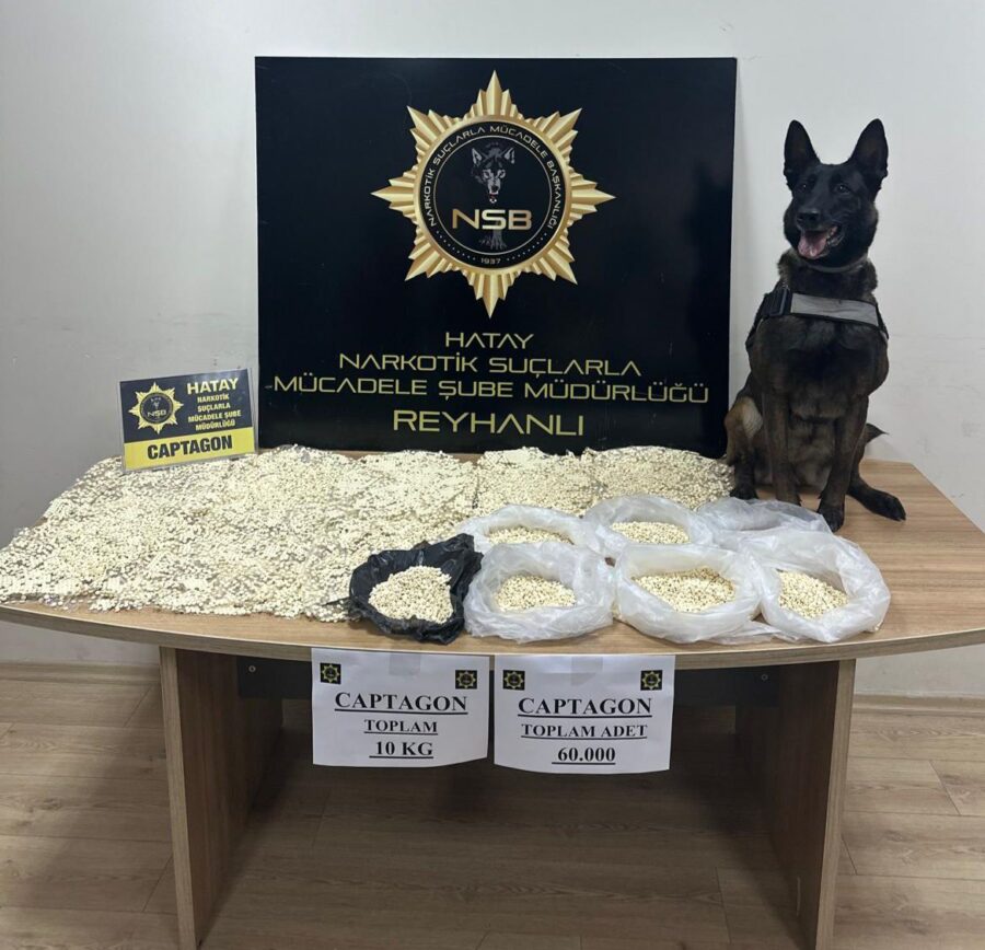 Yapılan aramalarda 10 kilo, 60 bin adet captagon ele geçirildi.
