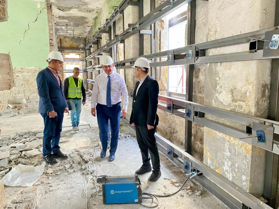 Kentin tarihi ve kültür dokusuna önemli katkı sunması beklenen yapının yeniden ayağa kaldırılması için yürütülen çalışmaları yerinde görmek üzere İskenderun Kaymakamı Muhammet Önder, İlçe Milli Eğitim Müdürü Ali Haytaz ile birlikte inşaat alanını ziyaret etti.