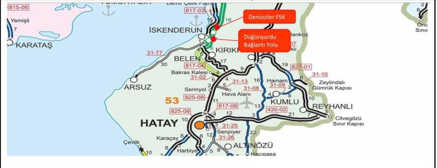 Denizciler başta olmak üzere eski belde olan mahallelerimizden trafiğin otoyola güvenli bir şekilde erişiminin sağlanması ve bu mahallelerimizdeki hemşerilerimizin Düğünyurdu Mahallemizde bulunan Acil Durum Hastanesi ile İskenderun Eğitim-Araştırma Hastanesine ulaşımı amacıyla trafik can ve mal güvenliği açısından Km:23+800’e FSK yapılması ihale edilmiş ve sözleşmesi imzalanmıştır.
