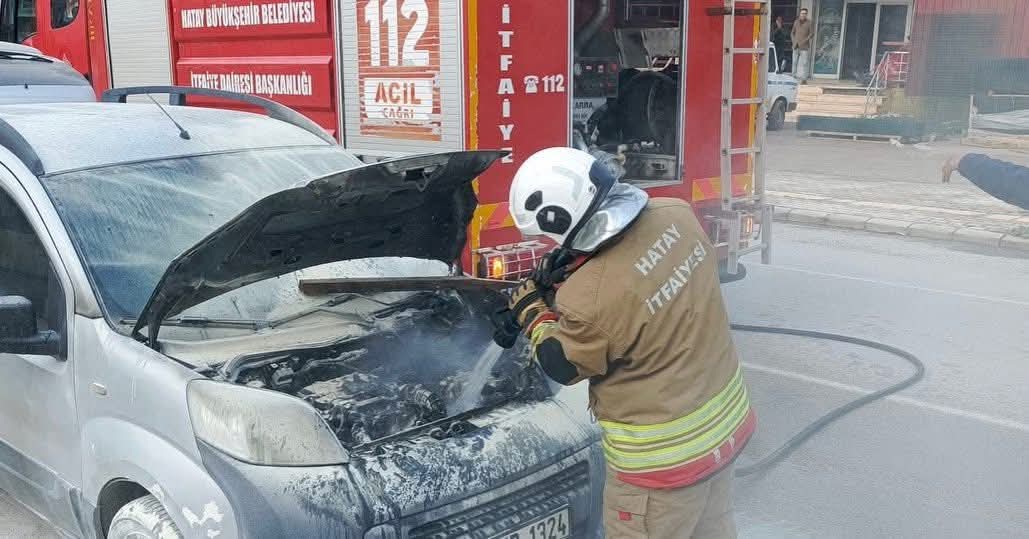 Hatay’ın Arsuz ilçesi Karaağaç Cumhuriyet Mahallesi’nde bir araçta henüz belirlenemeyen nedenle yangın çıktı.