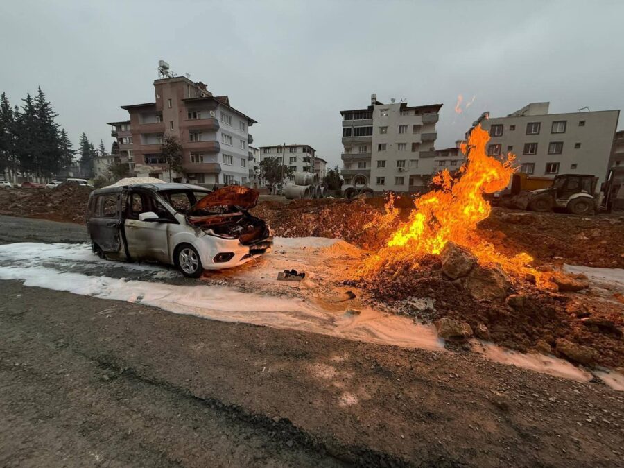 Hatay Antakya’da Doğalgaz Kaçağı Nedeniyle Araç Yangını