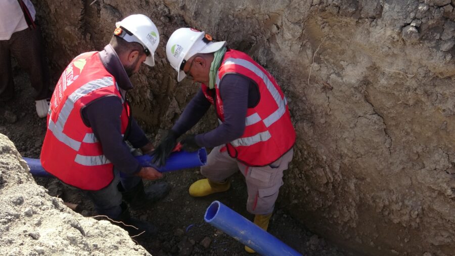 HBB Su ve Kanalizasyon İdaresi Genel Müdürlüğü (HATSU), Reyhanlı ilçesine bağlı Özkurtuluş Mahallesi’nde açılan yeni sondaj kuyusundan elde edilen suyun ana şebekeye aktarılması amacıyla 1.600 metre uzunluğunda içme suyu hattı döşeme çalışmalarına devam ediyor.