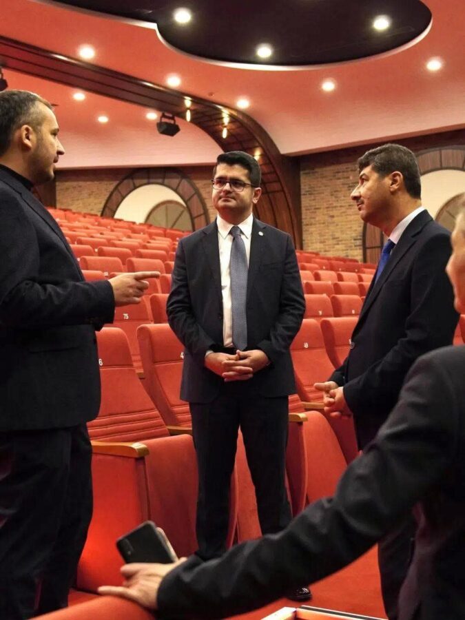 Kaymakam Eroğlu ve Milli Eğitim Müdürü Yanmaz, kampüs alanını gezerken, eğitime yaptığı olağanüstü katkılardan ötürü TED İskenderun Koleji Kurucusu Kadircan Karakayalı’yı tebrik etti.