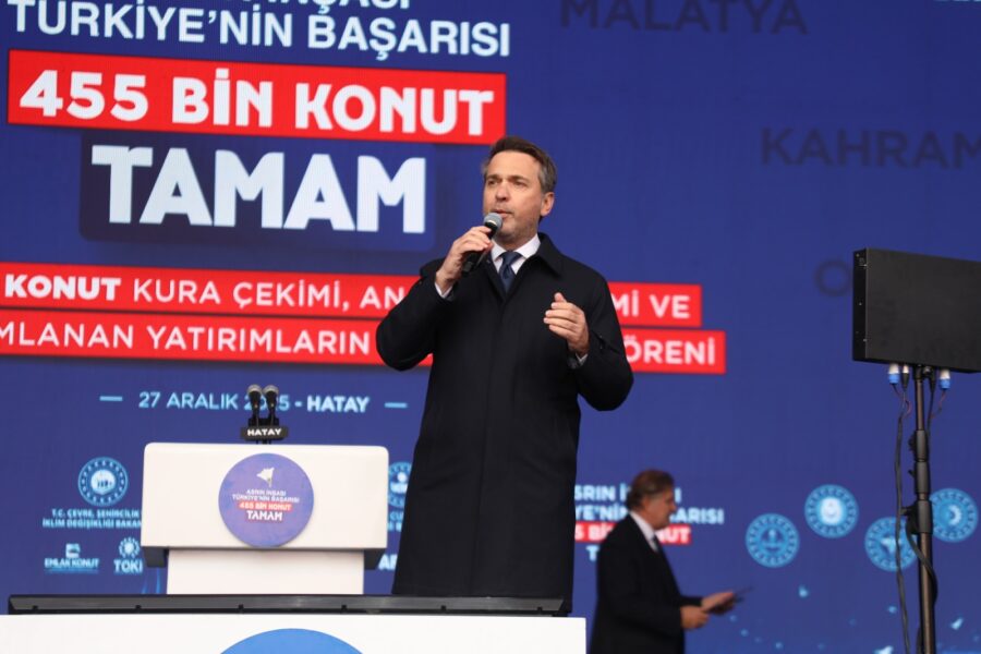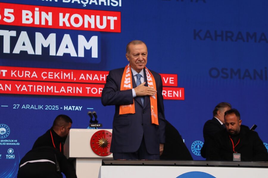 Bugün dünyada hemen hiçbir ülkenin altından kalkamayacağı büyük bir başarıya Hatay’da bizzat tanıklık ettiklerini ifade eden Cumhurbaşkanı Erdoğan, depremin vurduğu 11 ilde yapımı tamamlanan 455.000 afet konutunu hak sahiplerine teslim etmenin gururunu yaşadıklarını dile getirdi.