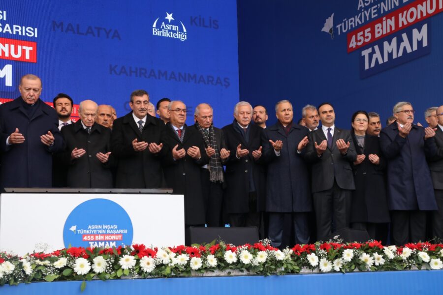 6 Şubat depremleri sonrası bölgeye sadece görüntü vermeye gelenleri eleştiren Cumhurbaşkanı Erdoğan, depremzedelerin acısını istismar eden, yalan haber yayan ve siyasi çıkar peşinde koşanların bugün ortada olmadığına vurgu yaparak “Biz buradayız, sizlerle beraberiz. Tıpkı 6 Şubat’ta olduğu gibi sizin yanınızdayız. Kardeşlik zor günde belli olur diyerek afetzedelerimizi bir an bile çaresizliğe terk etmedik. Rabb’im ömür verdikçe bundan sonra da sizi asla yalnız bırakmayacağız.” dedi.
