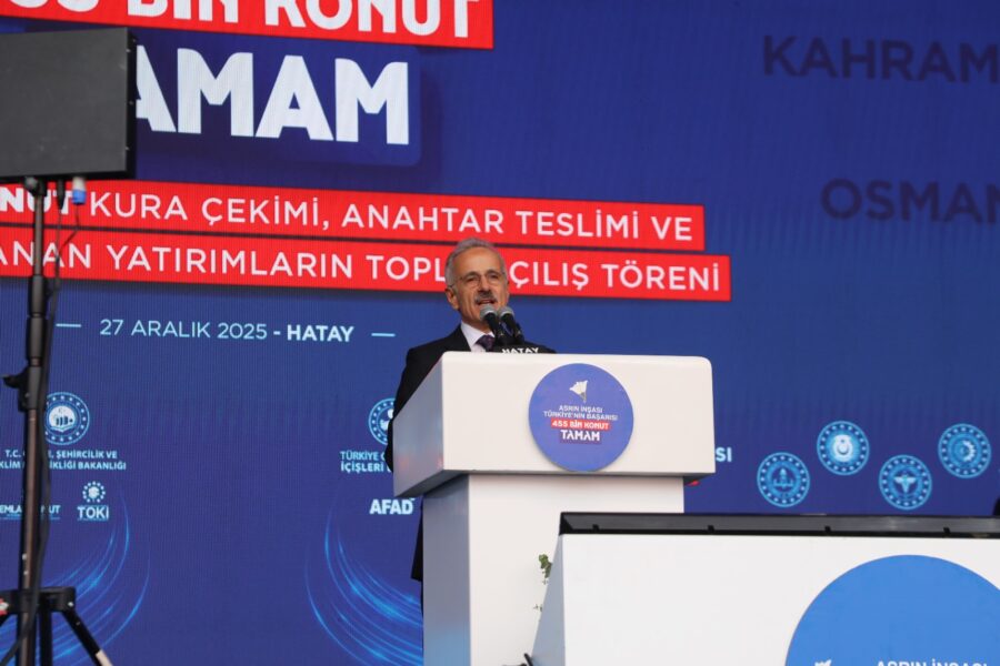 Hatay’da anahtarlarını teslim edecekleri konut ve iş yelerlerinin sayısını 153.755’e çıkardıklarını aktaran Cumhurbaşkanı Erdoğan, “Sadece konut inşa etmedik, şehrimizin altyapısını da tamamen yeniledik. İskanın yanı sıra başta savunma sanayi olmak üzere istihdam sağlayıcı projeleri hayata geçirdik. Defne’de başlayan Antakya merkez ve Samandağ’da içine alan hat boyunca Türkiye’nin en büyük atık su tünelinin inşasına devam ediyoruz. Toplam 1.000.030 dekar sulama sahasına sahip Tahta Köprü Barajı ve Reyhanlı sulama çalışmaları sürüyor. 180.000 metreküp kapasiteye sahip yeni biyolojik atık su arıtma tesisimizin tamamlanmasıyla birlikte Hatay’ın kanalizasyon problemi çözülmüş, Asi Nehri’nin de kirlilik sorunu ortadan kalkmış olacak. Tarihi yapılarımızı da çok titiz bir restorasyon sürecinden geçirdik. Hatay’ın sembol eserlerinden Habibineccar Camimizi aslına uygun şekilde ihya ederek ibadete açtık. Şehrimizin bir başka değeri olan Harbiye Şelaleleri’ni de inşallah eski güzel günlerine kavuşturacağız.” dedi.