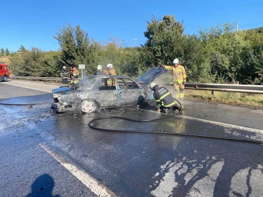 Hatay’ın Dörtyol ilçesinde TEM Otoyolu üzerinde meydana gelen kazada seyir halindeki bir araç alev aldı.