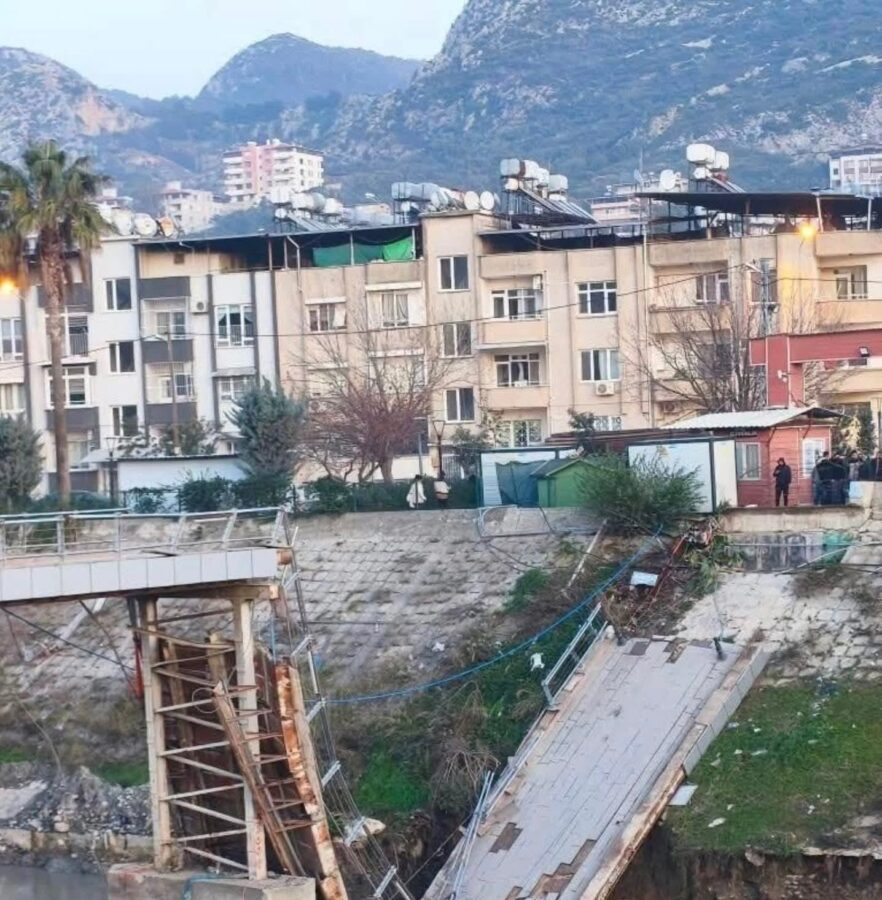 Hatay’ın Defne ilçesinde, Asi Nehri üzerinde bulunan ve Defne Sevgi Parkı bölgesinde Sümerler ile Akdeniz Mahallelerini birbirine bağlayan yaya köprüsünün bir kısmında çökme meydana geldi.