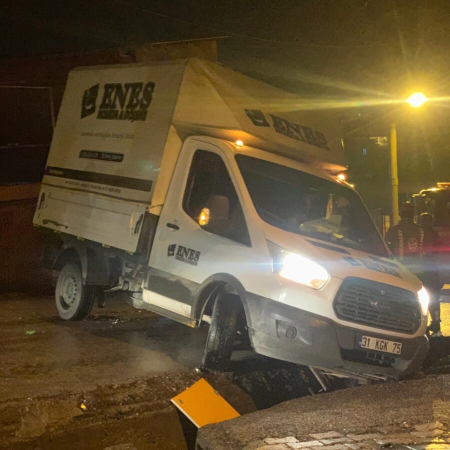 İskenderun Gültepe mahallesinde belediye tarafından üzeri kapatılmadan bırakılan açık kanal kazaya neden oldu. Yağışlı havada fark edilmesi zor olan açık kanal nedeniyle bir kamyonet yoldan çıkarak mahsur kaldı.