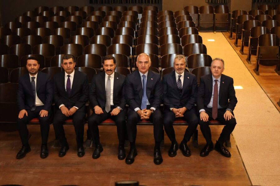 Bakan Ersoy; Hatay Valisi Mustafa Masatlı, HBB Başkanı Mehmet Öntürk, AK Parti Hatay İl Başkanı Mustafa Erdoğan, ilçe belediye başkanları ile birlikte restorasyonu Kültür ve Turizm Bakanlığı tarafından yapılan HBB Taş Bina’da bir araya geldi.