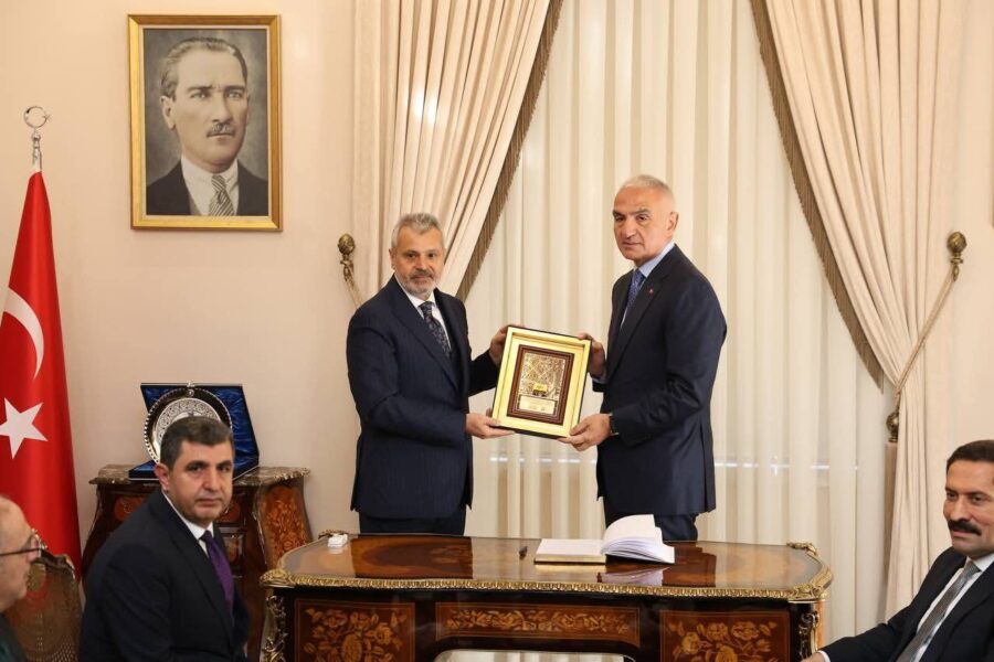 Bir dizi programlara katılmak üzere Hatay’a gelen Kültür ve Turizm Bakanı Mehmet Nuri Ersoy, Hatay Büyükşehir Belediyesini (HBB) ziyaret etti.