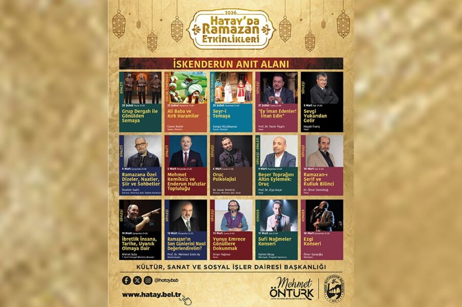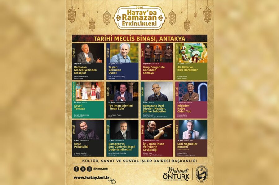 Ramazan ayı boyunca düzenlenecek etkinliklerle Hatay’da birlik ve beraberlik ruhunun daha da güçleneceğini belirten Kültür, Sanat ve Sosyal İşler Dairesi yetkilileri, tüm vatandaşları bu manevi atmosferi birlikte yaşamaya davet etti.