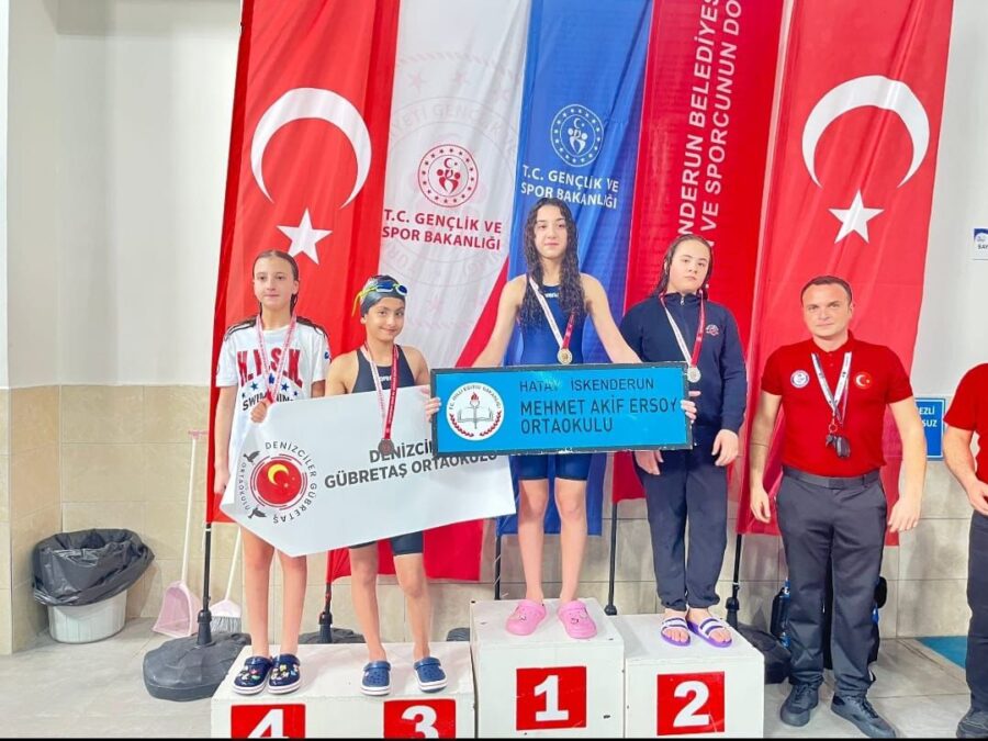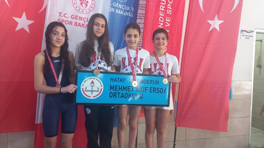 Hatay’da düzenlenen Küçükler Yüzme İl Birinciliği müsabakalarında, Mehmet Akif Ersoy Ortaokulu Küçükler Kız Yüzme Takımı önemli bir başarıya imza attı.